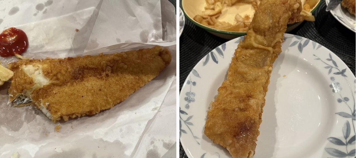 Partner was craving fish and chips however we had always been disappointed with the chip shops close to us. So I decide to look farther afield and came across Mary’s. I ordered ahead as advised by other patrons here and turned up to collect my fish and chips. The decor was very clean, quirky as if it had been recently renovated. The oil looked fresh and there was a minimal smell of salt and vinegar but no heavy grease in the air. This isn’t your tired chip shops close with grease coating the wall. The fish and savaloys proudly displayed themselves in the plexiglass window and the staff looked ready to help Upon arriving they knew my order as soon as I arrived. Unfortunately the fish ordered was wrong (incorrect fish and wrong sizes) but it was an honest mistake and the food looked so appealing I didn’t mind. The staff were super friendly and apologetic and generally just good vibes people so just want an issue. After wrapping the fish the traditional way vs bulky wasteful carbon boxes that take up half your recycling bin I looked forwards to the drive home, hoping my fish would survive the trip and not go soggy. The fish looked great. The pics do not do the food justice unfortunately. I had also cut a 1/3 of the large cod before taking a picture. It was really big. And delicious. It wasn’t oily or too hard or soggy. It was a brilliant piece of fish. I had wanted haddock but got cod and it was honestly the best cod fish I’d ever had. The skate was very good and served in a chunk rather than some places that cook the entire fish flat. It’s not my fave but I hear it was very good and the fish so moist. I love that they keep the skin on as that’s one my my favourite parts and contains lots of nutrients. On the chips they tasted of proper chip shop chips. There is a unique taste to them that shops in my area can’t achieve. Some of the chips should be crispy. Other large pieces soft and mushy inside. The only other time I’ve had better chips is at a shop in Upton Park almost 7 years ago. That might still be better but this is closer to wins out. On the saveloy I was told this was okay. The place also does fried chicken which look delicious and normal large sausages which I must try next time. In all I think I’ve found my new fish and chip shop. A place that is well run, has excellent quality skin on fish, does decent chips that remind me of my childhood and has super hygiene.